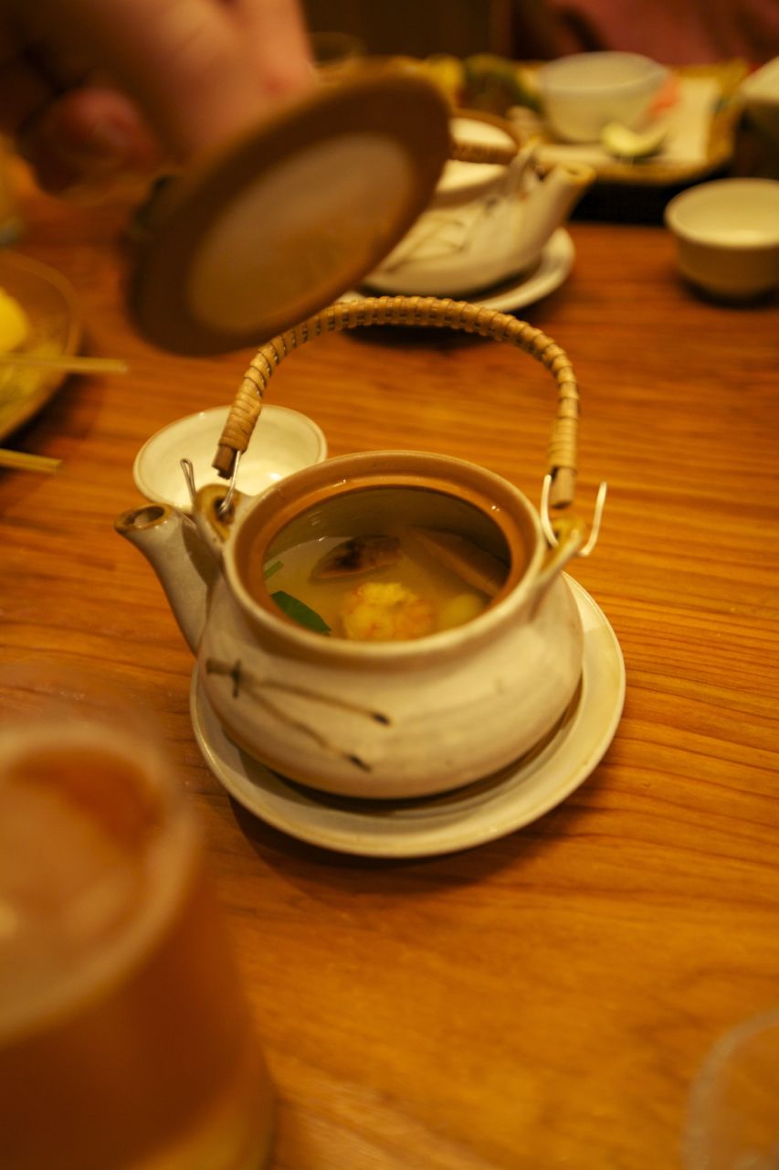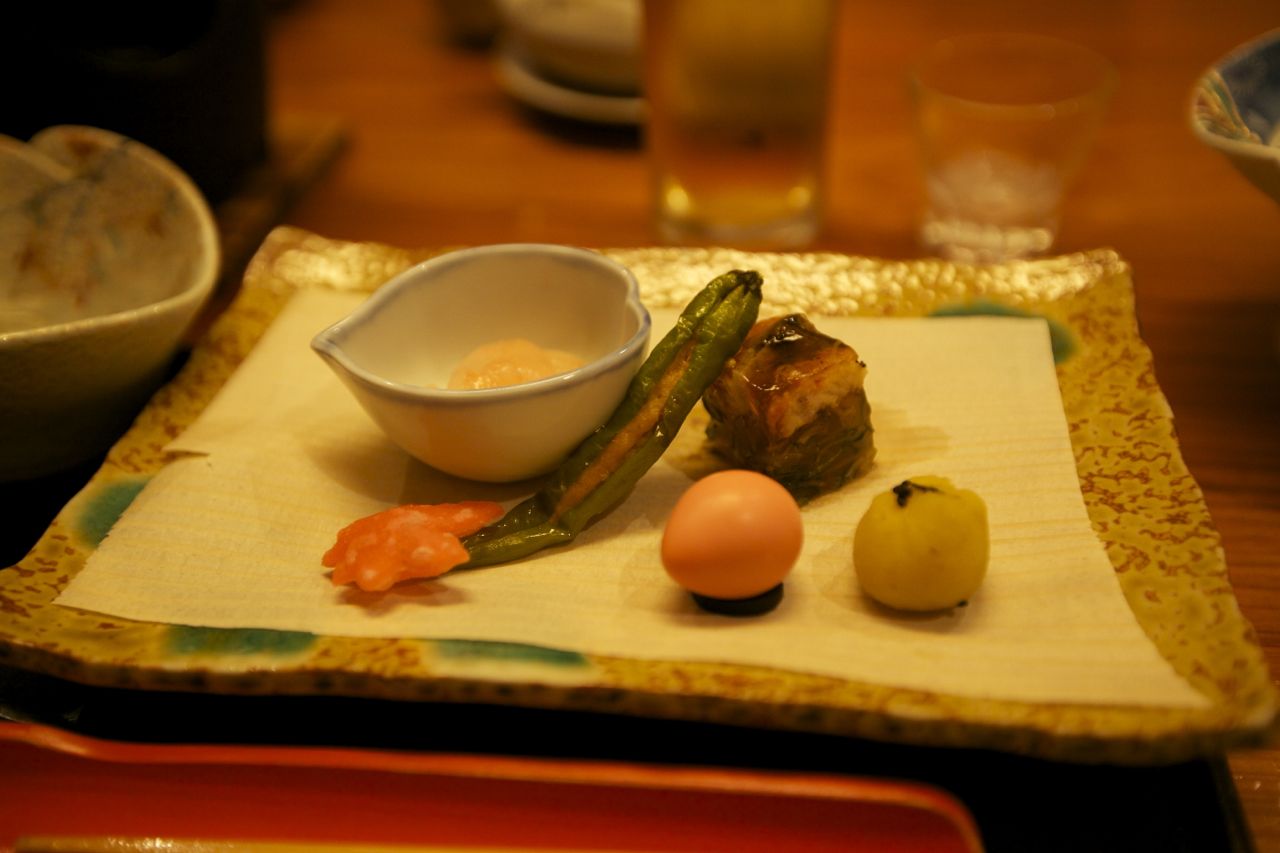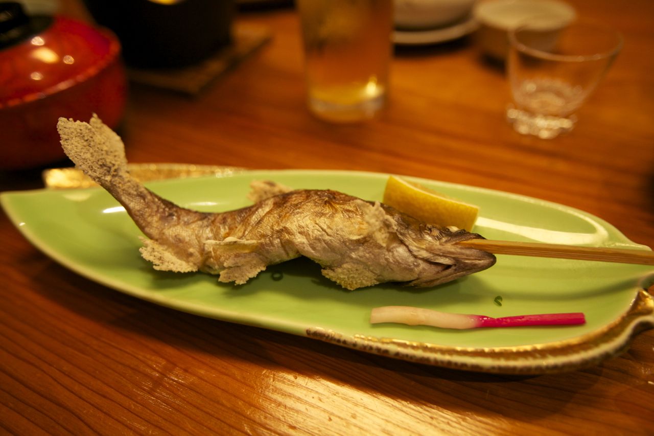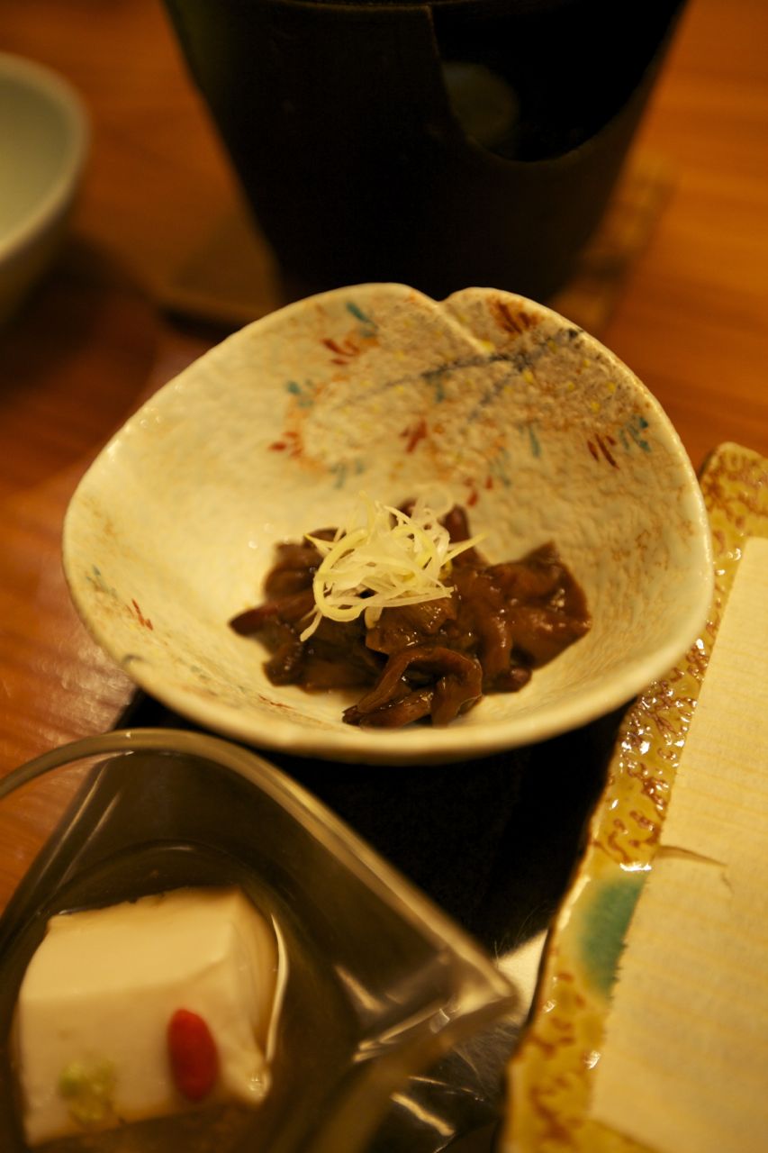Notre ryokan de Kurokawa où nous passons cette nuit ne déroge pas à la règle. Et malgré notre retard (à noter que généralement le dîner est servi à partir de 18h) nous avons droit à un fabuleux dîner pleins de petits plats, chacun étant une petite aventure gustative à lui seul. On nous offre même les boissons (à croire que nos hôtes sont gênés que nous n’ayons pu les trouver facilement).