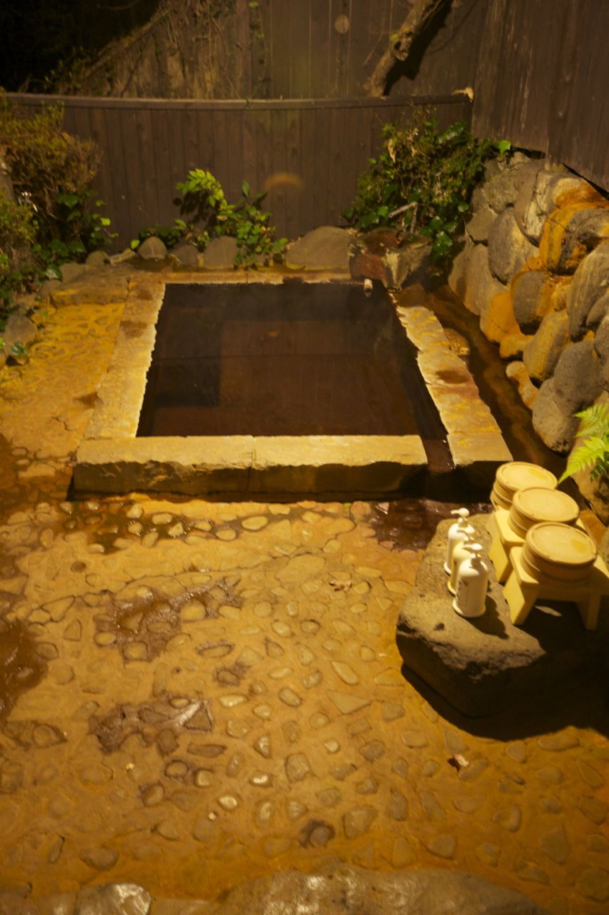 La fin de journée se termine dans le Onsen de l’établissement (Onsen = source d’eau chaude naturelle) la tête dans les étoiles (les Onsen offre aussi des bains en plein air). A en juger par l’odeur (métallique) et la couleur (rouille) du bain, l’eau est fortement chargée en fer. Le stress de la journée est définitivement envolée après quelques minutes passées à se délasser. Une excellente nuit de sommeil nous attend.